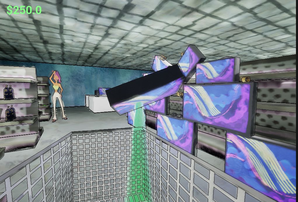 Collect objects with your sticky hand and max out your credit card before the end of the world in this 3D First Person Rail Shooter. Meet 6 NPC’s who get in your way and collect as many objects before the world comes to an end.